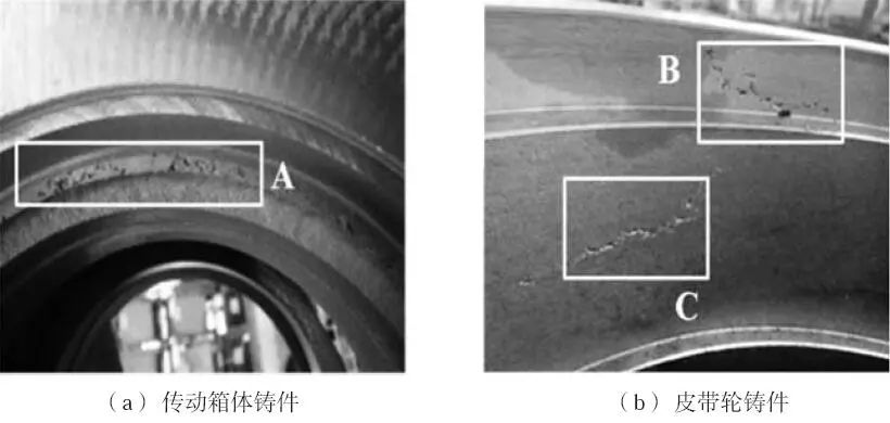 圖4 QT450箱蓋及氫氣孔缺陷
